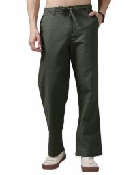 Vogaan Men's Linen Cotton Casual Trousers Pants | Stylish Comfortable Trousers for Office Work and Outings (Olive-Green_32)