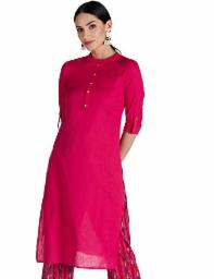 W for Woman Women's Cotton Kurta (20FEW13783-211535_Pink_12 (Large))