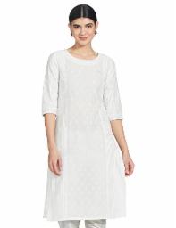 W for Woman Women's Cotton Kurta (21FEW14804-115780_Ecru_Regular)
