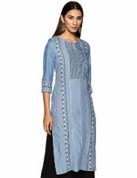 W for Woman Women's Rayon Straight Kurta (20FEW13005-113426_Denim_10 (Medium)_Denim Blue_10 (Medium))