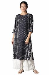 W for Woman Women's Viscose Floral Regular Kurta (22FEW15957-118407_Black_M)