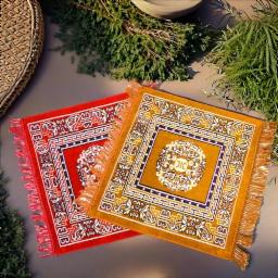 Weavers Villa Set of Prayer Mat/Aasan/Puja Mat/Meditation Mat/Multipurpose Velvet Rug Mats [Size: 2ft X 2ft] (Pack of 2)
