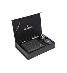 WildHorn Rakhi Gift Hamper for Brother - Classic Men's Combo/Gift Set of Leather Wallet, Keyring, Pen and Rakhi for Brother/Bhaiya. (Black Croc)