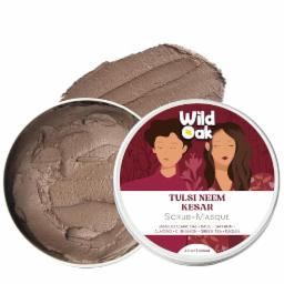 WildOak Tulsi, Neem, Kesar & Multani Mitti Face Scrub & Mask | Anti-Acne & De-Tan | Fights Aging & Hyperpigmentation | Opens Pores & Exfoliates | Detoxifying Face Pack with Powerful Herbs | 100g