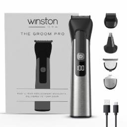 Winston Groom Pro 5 in 1 Grooming Set for Men with 14 Length Attachment Comb, Digital Display, Pedestal, Fast Charging Face, Ear, Nose, Beard, Body Hair Trimmer for Men