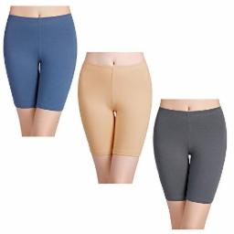 wirarpa Women's Anti Chafing Cotton Underwear Boy Shorts Long Leg Boyshorts Panties 3 Pack, Deep Grey/Beige/Blue-3 Pack, Large