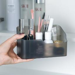 wolpin Cosmetic Storage Box Makeup Lipstick Makeup Brush Organiser Stand Frosted Case Dressing Table Bathroom Organiser with Removebale Grid Box (16.5 x 8.5. x 10 cm), Gray, Plastic