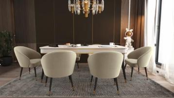 WOODEN SPACE 6-Seater Wooden Dining Table Set | Nano Composite Marble Top | Solid Wood Base | Modern Dining Room Furniture with 6 Chairs (Cream)