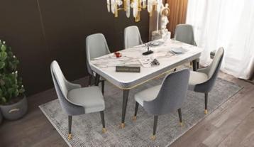 WOODEN SPACE 6-Seater Wooden Dining Table Set | Nano Composite Marble Top | Solid Wood Base | Modern Dining Room Furniture with 6 Chairs (Gray)