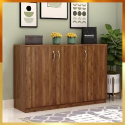 Wooden Street Zora Shoe Rack Engineered Wood 3 Doors Shoe Rack Footwear Stand Organizer, 1 Year Warranty (Columbian Walnut Finish)