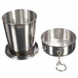 Wowbin Small Foldable Glass Compact Portable Folding Stainless Steel Travel Mug - 120ml Water Cup with Hanging Chain for Camping, Hiking & Outdoor Adventures (Pack of 1)