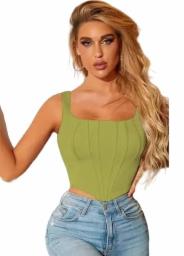 XX XONEX Microfiber Ultra Soft Feather Touch Seamless Square Neck & V Shape in Front for Tummy Covering Double Layered Support Spaghetti Tank/Crop TOP for Women, Girls (Size-28) (Color-Green)
