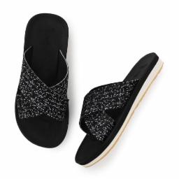 YOHO Starry Women Ortho cushion Slippers | Extra Soft yet durable cushion slippers | Cross strap for better grip | Skin friendly | Lightweight, Waterproof & Outdoor friendly | Classic Black - UK 7