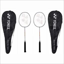 Yonex Badminton Racquet GR 303I Made in India Pack of 2 with Full Cover (Silver/Silver)