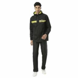 ZEEL Rain Coat for Men Waterproof for Bike Riders with Adjustable Hood Along with Reflective Back, Waterproof Rainwear Suit with Polyester Jacket and Pants, AZ02 Black-Lime L
