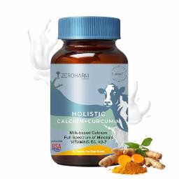 ZeroHarm Holistic Calcium + Curcumin - Milk Based Calcium With Magnesium, Vitamins D3, K2-7 - For Bone, Joint & Muscle Support - Plant-Based Herbal Supplement for Men and Women - 60 Tablets
