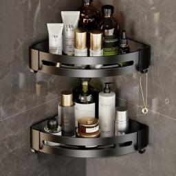 zuku Corner Shelf/Rack for Bathroom Without Drill Wall Aluminium Self Adhesive Bathroom Shelf/Shelf for Kitchen Corner Rack Wall Mounted Bathroom Fittings/Storage (Pack of 2)