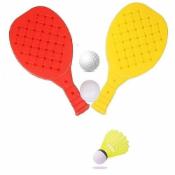 JAGMOOLYA Products Combo (Solid/Hard Plastic Badminton Racquet + Free 1 Pcs Plastic Shuttle 1 Ball Toy for Kids) Badminton Return Birthday Gift Item Multi Color Pack of 1 Pair