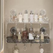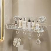 SHALVI Transparent Suction Wall Mounted Plastic Bathroom Shelf | Self Adhesive Bathroom Shelf | Bathroom Organiser Without Drill, Wall Mounted Bathroom Organizer, Water Ripple Design (Pack of 1)