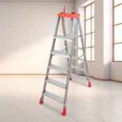 PARASNATH 5 Step 2Way Ladder Orange Silver Colour Step Ladder with Tool Tray Steel Ladder with Aluminium Steps Ladder for Home - 6 Year Manufacturer Warranty - Made in India