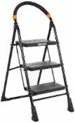 amazon basics Clamber-Foldable Step Ladder, Safety-Clutch Lock, Ribbed Steps, Knee Guard, Non-Marring PVC Shoes, 3 Steps (Steel, Black&Orange, Iron&Plastic)