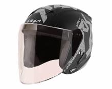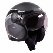 Vega Lark Victor ISI Certified Matt Finish Lightweight Open Face Helmet for Men and Women with Long Clear Visor(Dull Black Silver, Size:L)