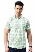 Majestic Man Men's Slim Fit Pure Cotton Checkred Half Sleeve Casual Shirt (Green, X-Large)
