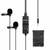 Dual Level Microphone for Smartphone Camera,157 Inch/4m BOYA BY-M1DM Dual-Head Lapel Mics with 1/8 Plug Adapter